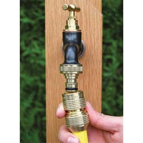 Nez de robinet en laiton filetage femelle 20×27 prévu pour raccorder un raccord automatique de tuyau d’arrosage.