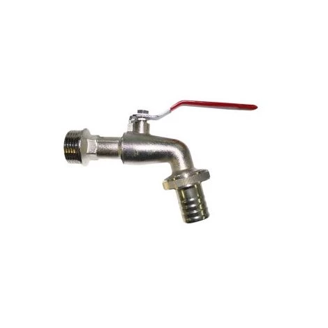 Robinet 1/4 de tour, entrée 15X21 – sortie 20×27, nez cannelé Ø 15 spécial arrosage.